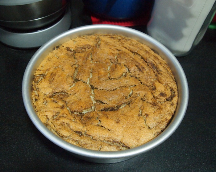 午睡前刷下厨房,看到这个方子,就忍不住要撸一个。果真没有睡午觉就是老眼昏花,蛋黄倒进面盆,看成倒进面粉,我去~~~~好在咱蛋黄多的是,打了7个土鸡蛋一个还漏黄,6个才收获160蛋白,要是做8寸,至少10个,成本真心高啊啊啊,那可是我从乡下运回来的,虽然它才1.5元一枚,可不是用来给我练手的。8寸模烤的,先上个出炉高空摔下图,明天早餐再切块看组织。话说我现在越来越有耐心了。。。。#晚餐•2014年8月30日#