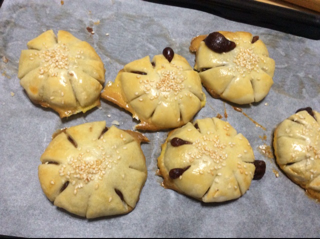红豆沙包多了,蛋液刷多了,20分钟上色较浅,但是味道是可以的。