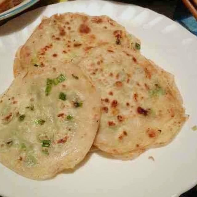 学妈妈做的葱油饼~意大利的葱真的是洋葱吖,切得我一把泪