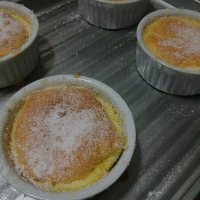等撒上糖粉已经开始回缩了,感觉蛋腥味略重,看了别人的配方都是100g牛奶,明天再试试!