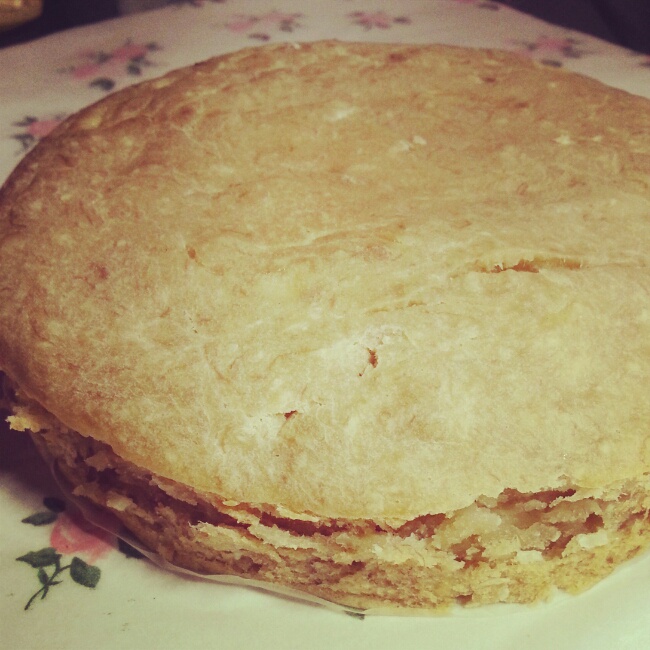 没开裂……不彭松,好厚实~味道还行……总之好丑……