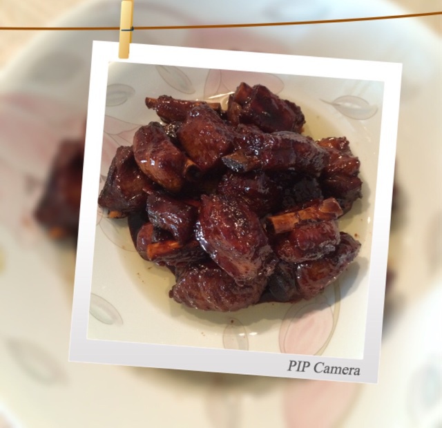 懒人版糖醋排骨。准备其它菜去了,多煮了一会,颜色欠佳,口感尚可