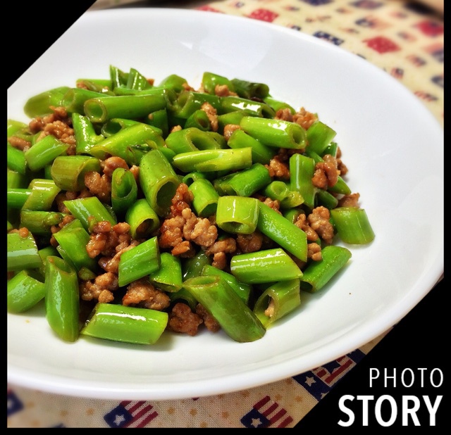 MissMonster 做过 2014年10月16日 20141015【肉沫空心菜梗】先炒肉沫、再下空心菜梗、连油都省了、调味只加了豆瓣酱、配上肉沫真心炒鸡香啊、、#午餐•2014年10月15日# 2014-10-16