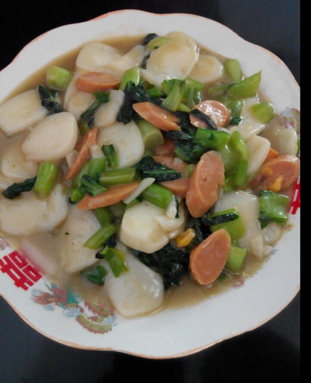 青菜肉丝炒年糕
