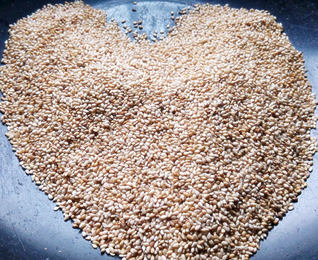 妈妈给的芝麻,听妈妈说是三年前的,好吧,还在想会不会坏了,然后炒了一下,好香的说,我不得不佩服妈妈,保存芝麻保存的这么好,亲爱滴老妈,我爱你!