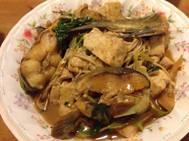 鲶鱼炖豆腐,放了金针菇,很入味