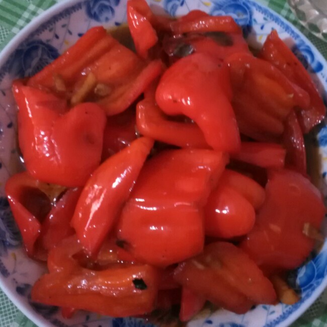 炒红椒块,有点甜,