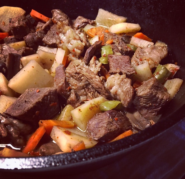 红酒焖牛肉。还是大铁锅,换了口大的做。