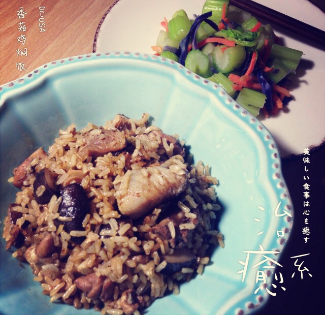 LuLu是吃货_ 做过 香菇鸡肉饭 从小时候从来不吃香菇到现在狂爱香菇 果然年纪大了口味也会变 哈哈~焖饭的香味溢了一屋子 再加盘爽口小菜 一人食 吃独食~ #晚餐•2014年12月18日# 2014-12-19