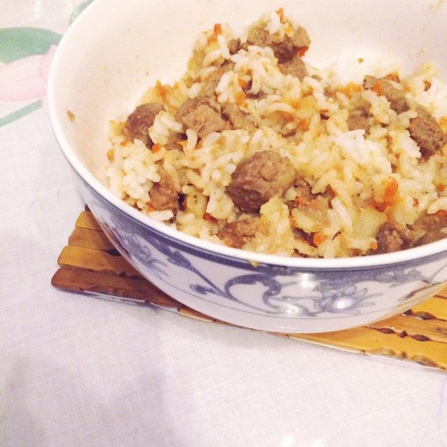 啊蘑啊蘑 做过 正宗新疆手抓饭 渣图渣像素( ¯ ¨̯ ¯̥̥ ) 准备材料的时候削了个土豆 等做的时候才发现根本不需要土豆 管他的全扔锅里了 就是这么随便(ؓؒؒؑؑؖؔؓؒؐؐ⁼̴̀ωؘؙؖؕؔؓؒؑؐؕ⁼̴̀ ) 然后就发现因为多加了土豆整个饭变的粘粘的(눈_눈) #晚餐•2014年12月23日# 2014-12-24