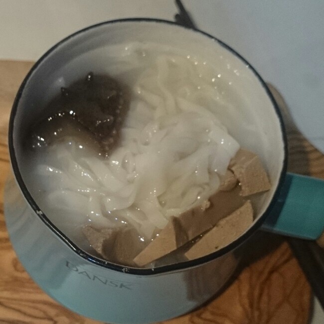 我先自己下点面吃,两个懒熊还没起!放了白萝卜,半只海参,一点猪肝