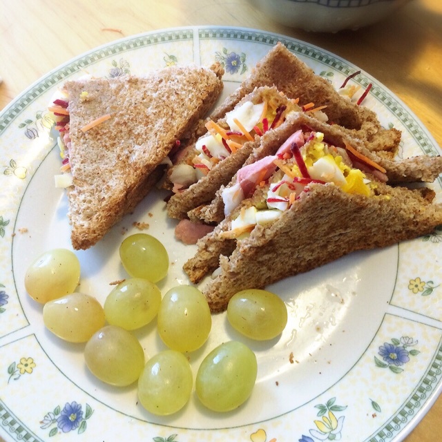 宏烧如哥 做过 每顿饭都少吃点 #每顿饭都少吃点#terzo giorno brunch麸卖沙拉三明治 青提周六起晚了点,一个三明治打发了今天米兰居然有十五度,心痒痒的想出门逛逛,但是没人同行。继续宅=_= #午餐•2015年1月10日# 2015-01-10