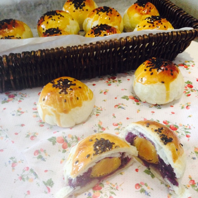 一上午从练猪油,做紫薯馅开始做起就为了这些待嫁的紫薯蛋黄酥!