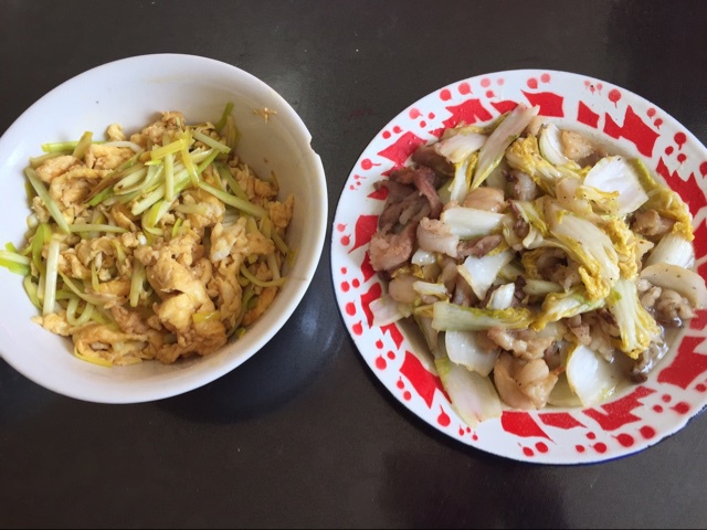 蒜黄炒鸡蛋,娃娃菜炒肉