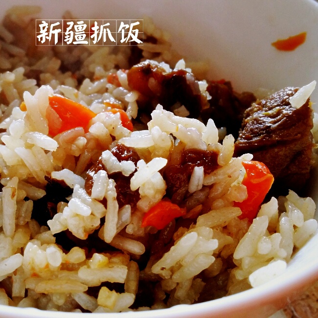 蘼芜蘼芜 做过 2015年02月07日 【唯爱与美食不可辜负-手抓饭】网购的羊肉放了快一周,终于得到宠幸。葡萄干洗净,胡萝卜切丝,皮芽子切块,肥肉切丁,炒肉,淘米,煮饭。没有塔吉锅,电饭锅煮的味道也还不错。当然,比不得当年学校门口那个胖胖的维族大姐做的。虽然,已经忘了那是什么味道。#蘼氏手抓饭最大的特点就两个字,肉多!##午餐•2015年2月7日# 2015-02-07