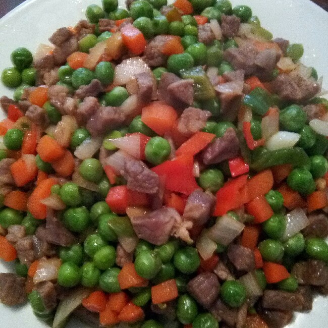 豌豆,红萝卜丁,肉丁,洋葱丁