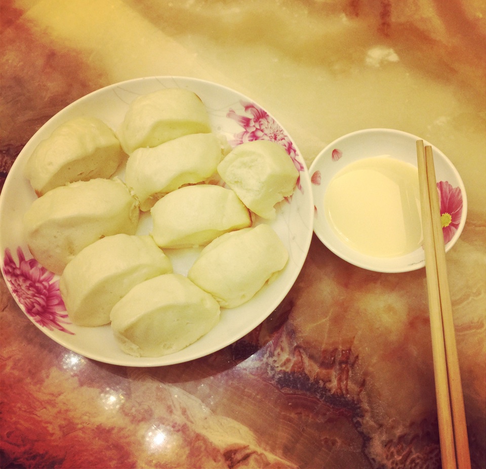 脚肿的跟猪蹄一样 不能到处乱跑 索性就在家里捣腾 做了小馒头 第一次卖相差了点儿 粘着炼奶好好次