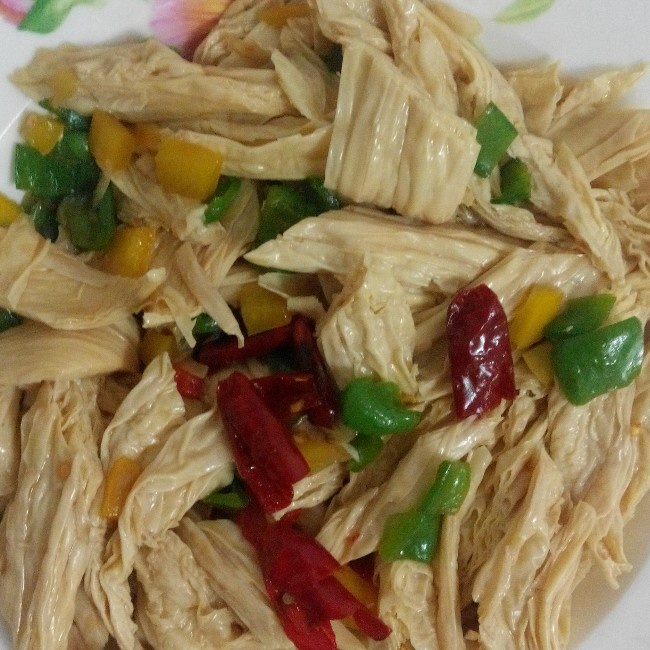凉拌腐竹,搭配了彩椒,颜色棒棒哒,很适合年夜饭节奏~