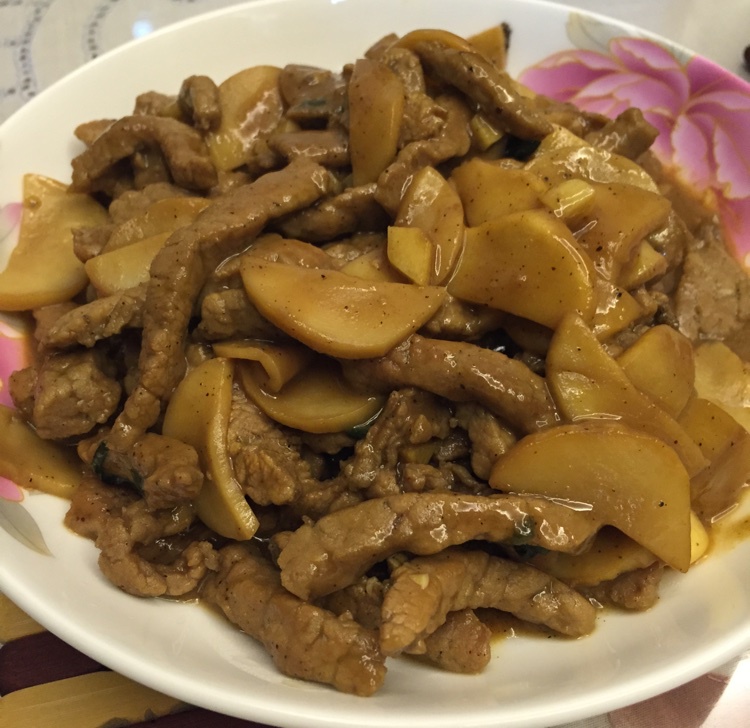 牛肉丝炒茶树菇