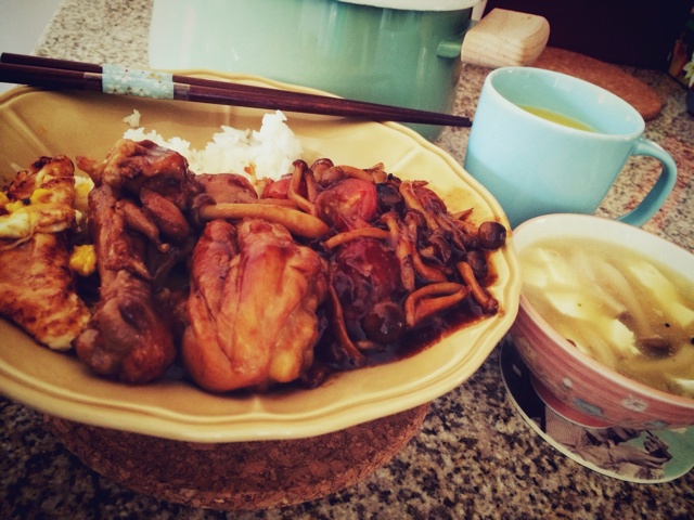 加了菌菇和小番茄 带了点酸酸的味道 配上菌菇豆腐汤 一顿午饭吃得好撑
