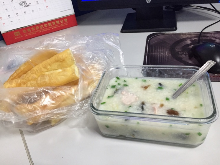 皮蛋瘦肉粥、油条。完美!
