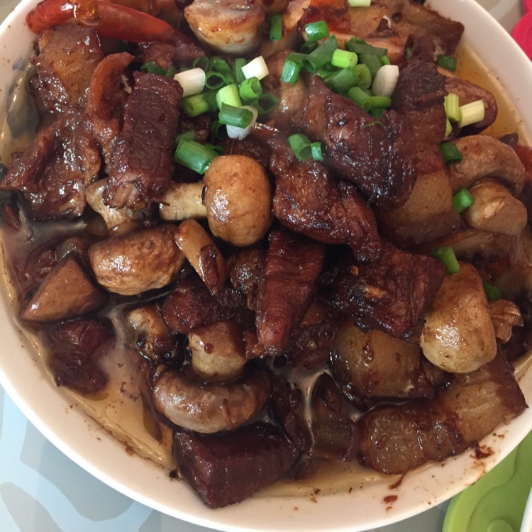 红烧肉烧蘑菇