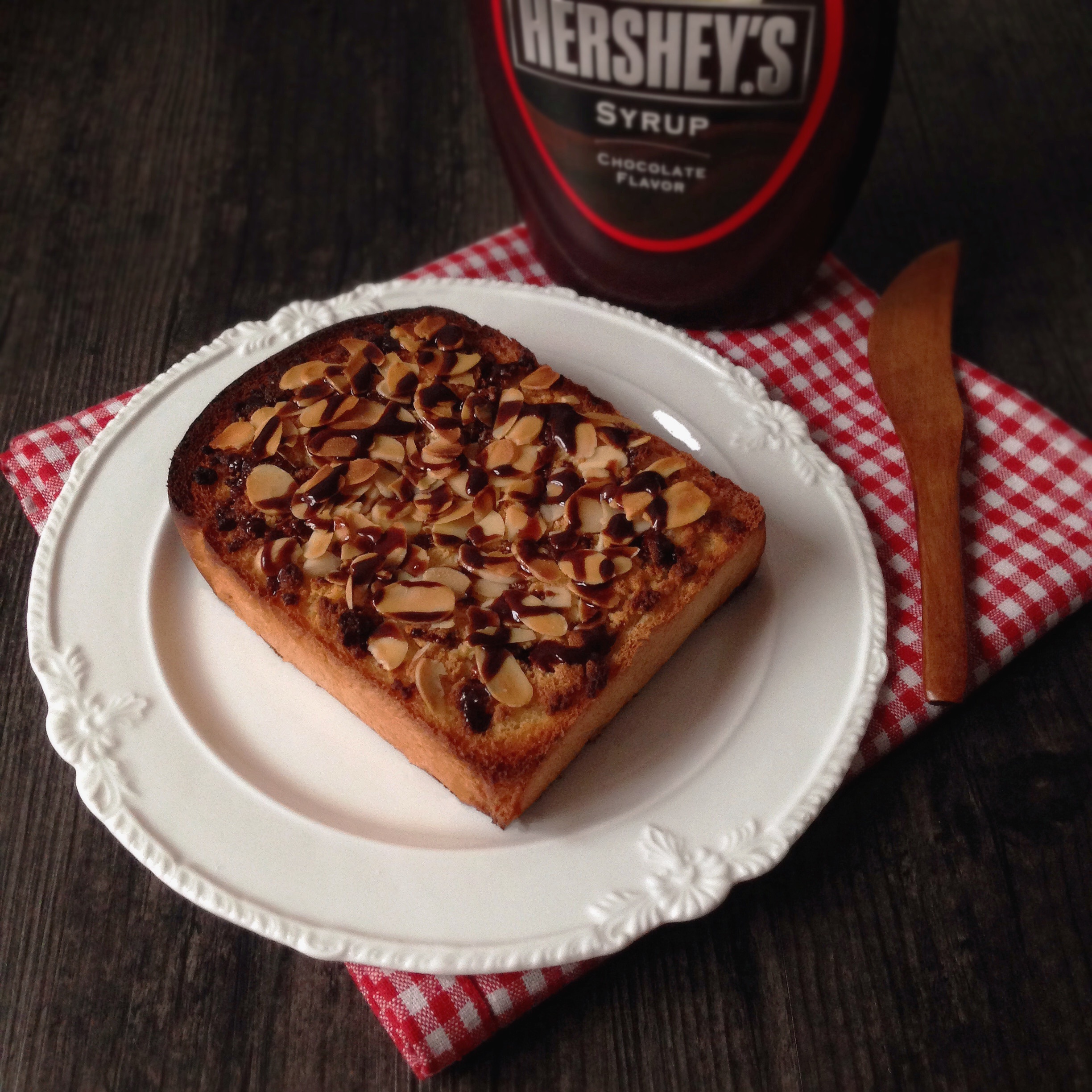 leti有刘海 做过 杏仁花生巧克力酱吐司 #吃货的小浪漫# 拔草了港式吐司就是为了来刷凉酱的华丽版吐司~没有花生酱就用了之前做过的奶酥厚片的奶酥部分参考弄了点抹酱:10g黄油融化加入10g奶粉再加4g糖(因为后面有甜巧克力酱所以奶酥部分不想太甜)搅匀后抹在划好口的吐司上再继续杏仁片、巧克力酱就好啦~香酥甜蜜! #早餐•2015年3月11日# #高大威猛吐司君# 2015-03-11