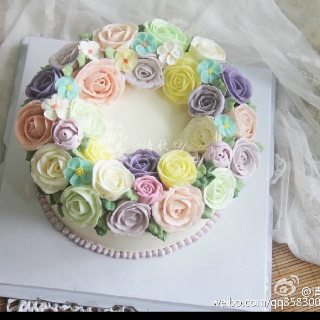 韩式裱花课学员作品,零基础的姐姐做的,干净美丽