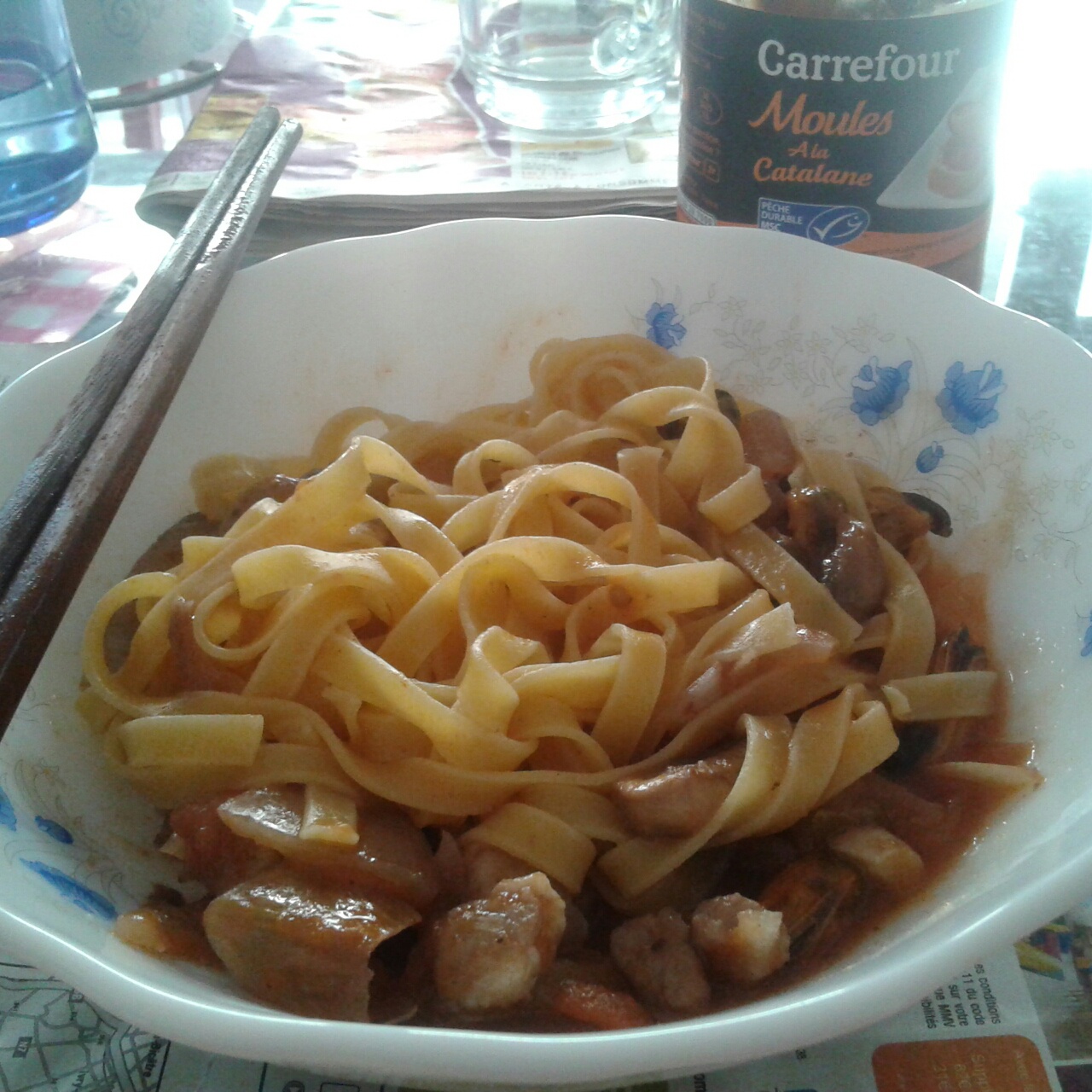 五分钟搞定的晚饭(>^ω^<)还加了朋友给的moule,好满足~