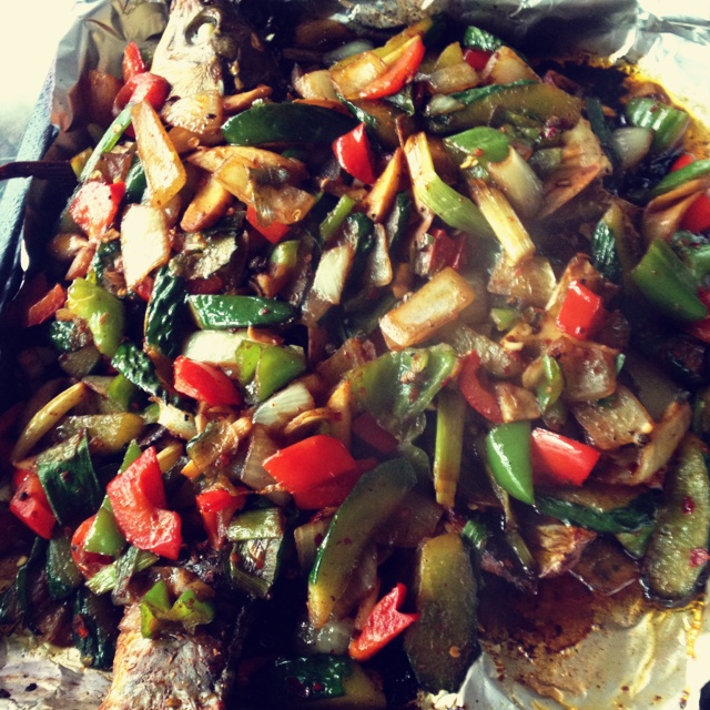 cake_chan 做过 香辣烤鱼-烤箱版 没有按原菜谱的调味 然后自我感觉是汤汁少了点 应该是炒菜那一步有待改进 还有就是鱼肉腌制时间太短了 中午的太匆忙了(笑) #午餐•2015年4月12日# 2015-04-12
