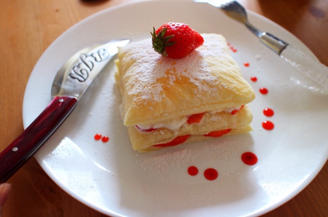 西兰花国的厨娘Cami 做过 奶油白巧草莓千层酥 做这个真的很快手,最多半小时搞定,配上Thiers新买的甜品刀,装饰部分是我做的草莓酱汁 ʕ •ᴥ•ʔ 算是近期做的最美甜品吧 #午餐•2015年4月12日# 2015-04-12