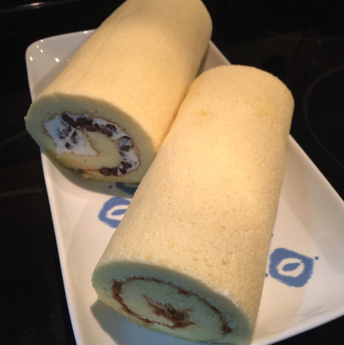 一烤盘出两卷,一卷是沙拉酱肉松卷,一卷是奶油蜜红豆卷。甜咸两不误,呵呵
