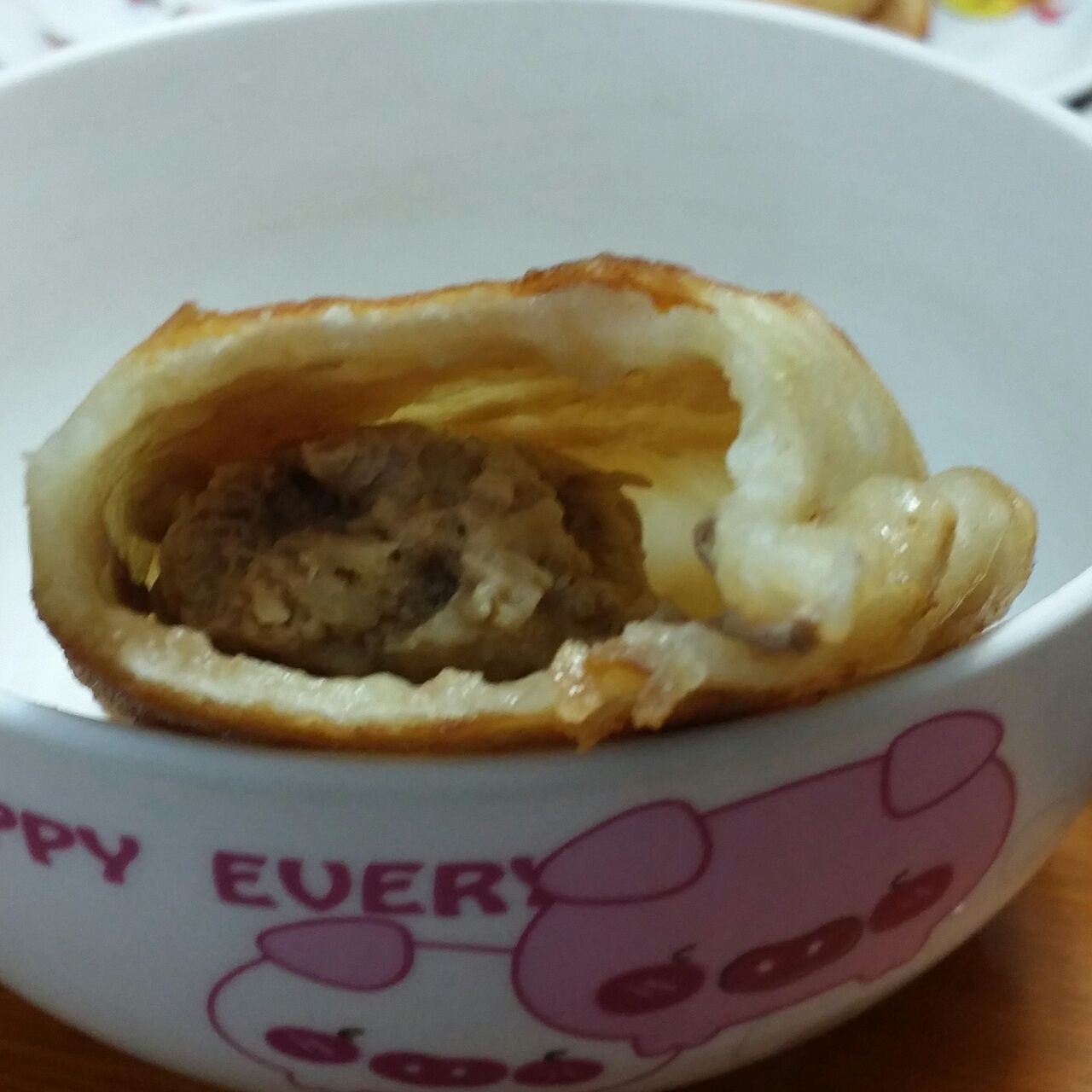 馅饼。跟儿子幼儿园同学的姥姥学的金针菇猪肉馅,特别香!