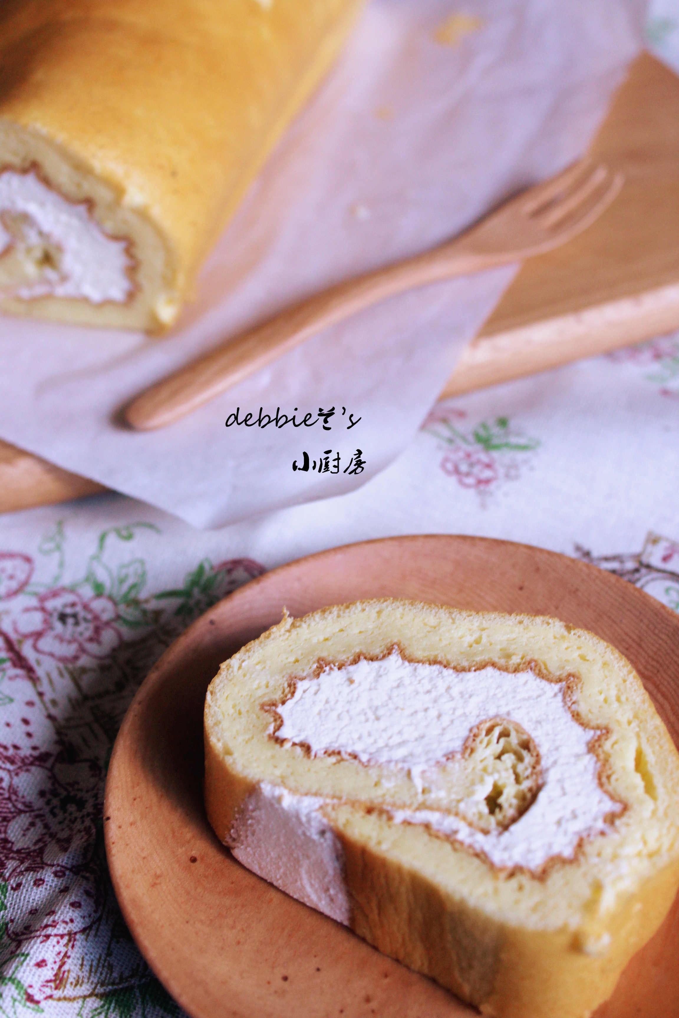 debbie兰 做过 浮云卷—吃起来像布丁的卷卷 真的……卷的……不能……再难看……太软了根本立不起来!怕它摊成一片就想着用擀面杖顶住,结果就变成两截了== #早餐•2015年4月26日##松下烘焙大师赛# 2015-04-26