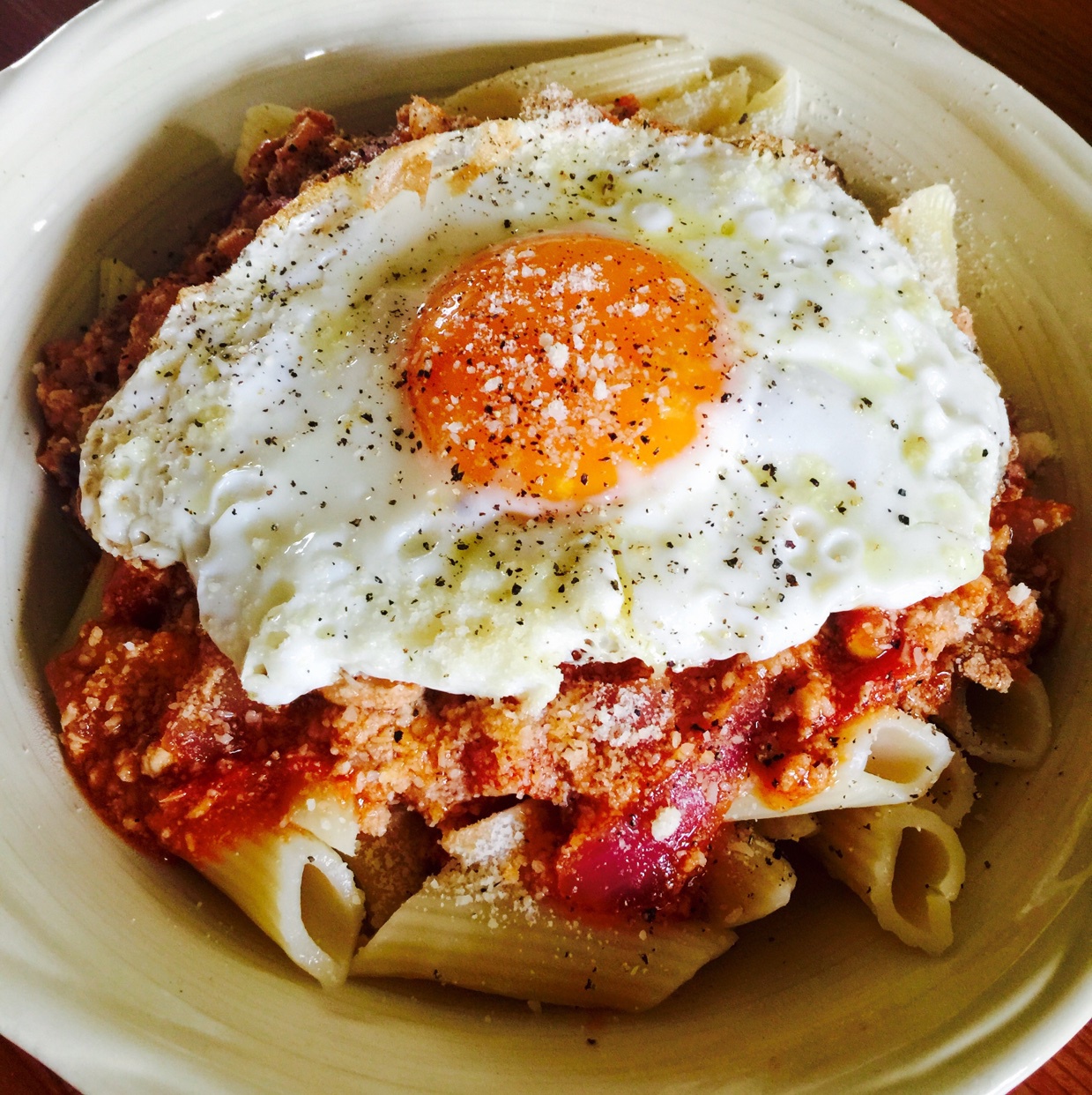 儿子在学校生病了几天,昨天晚上回来了,今天给他用大量番茄熬点茄红素,肉酱通心粉。