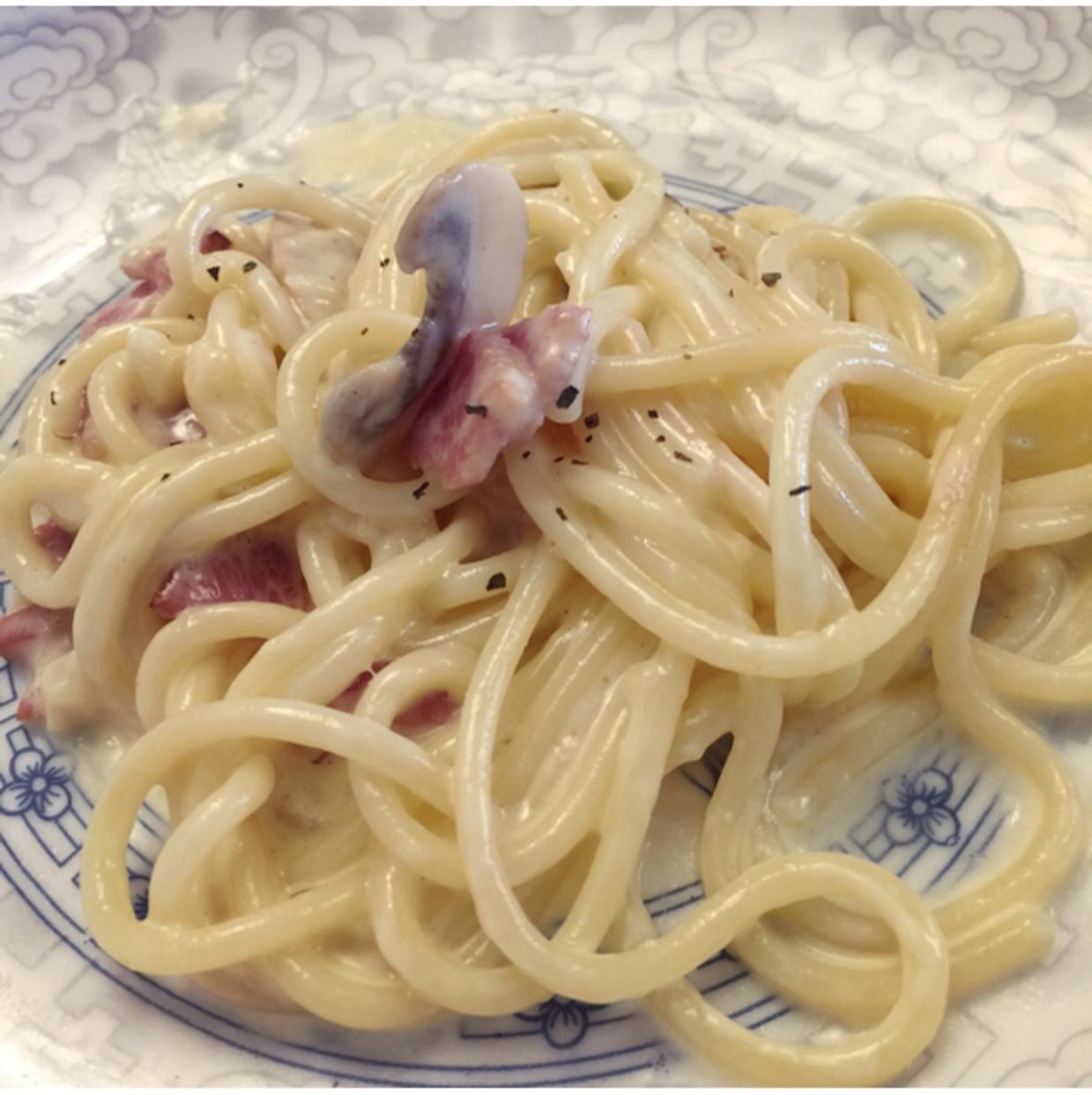 白蘑菇奶油培根意面