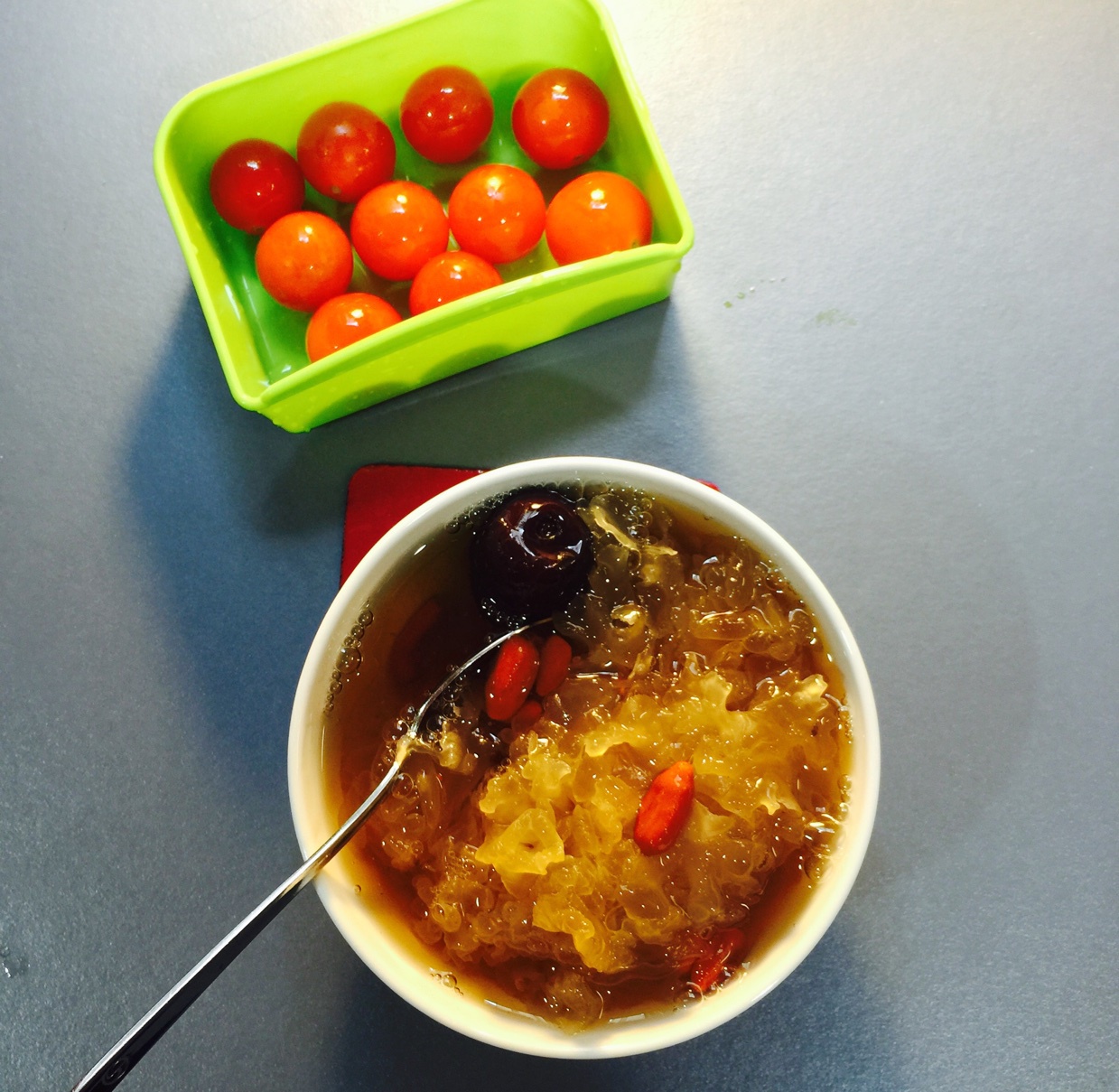 晚餐:银耳红枣枸杞羹+樱桃番茄