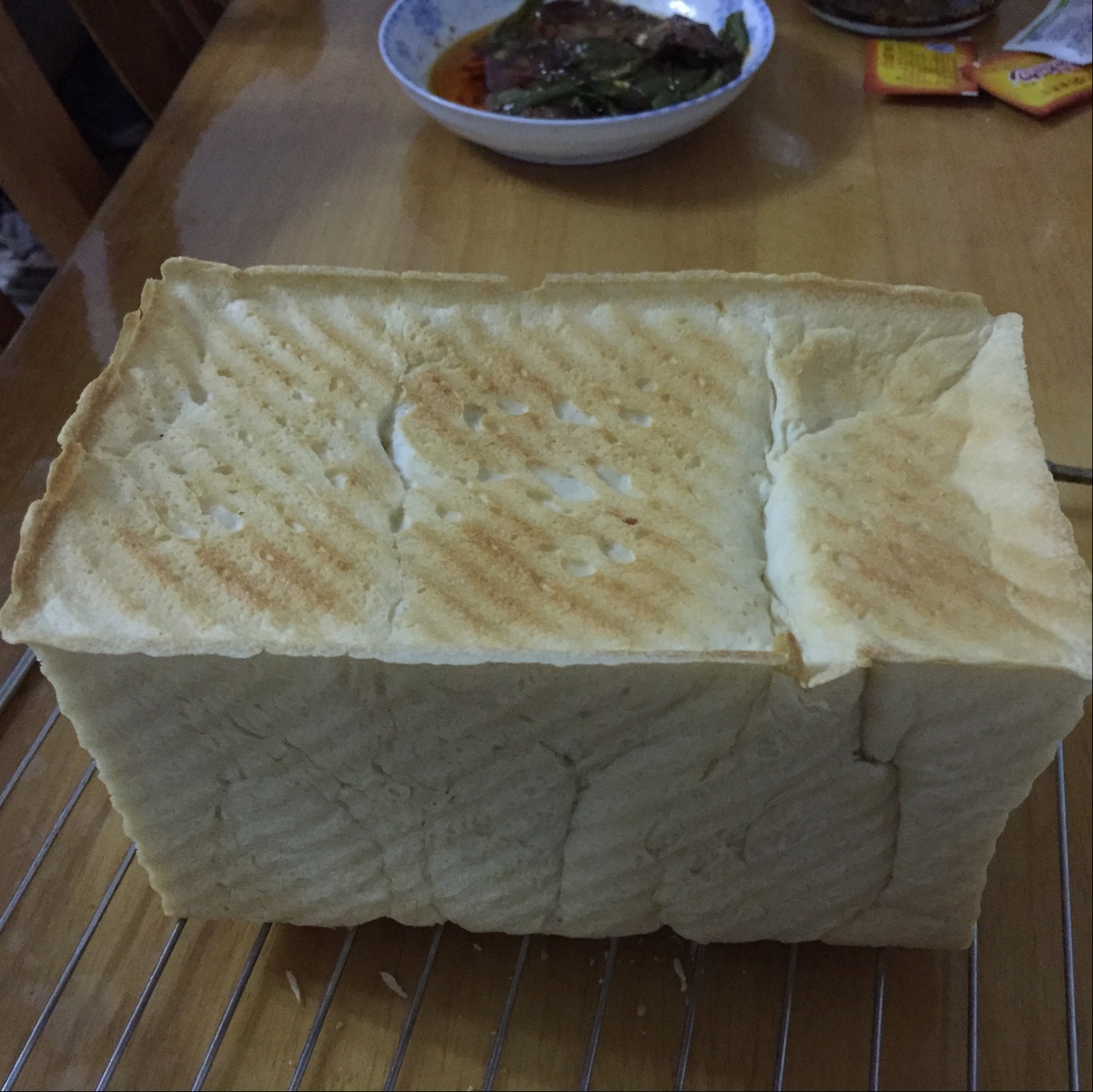 没有上色,取了盖子又烤了一下。第二次有点发过了。不知道好吃不好吃。