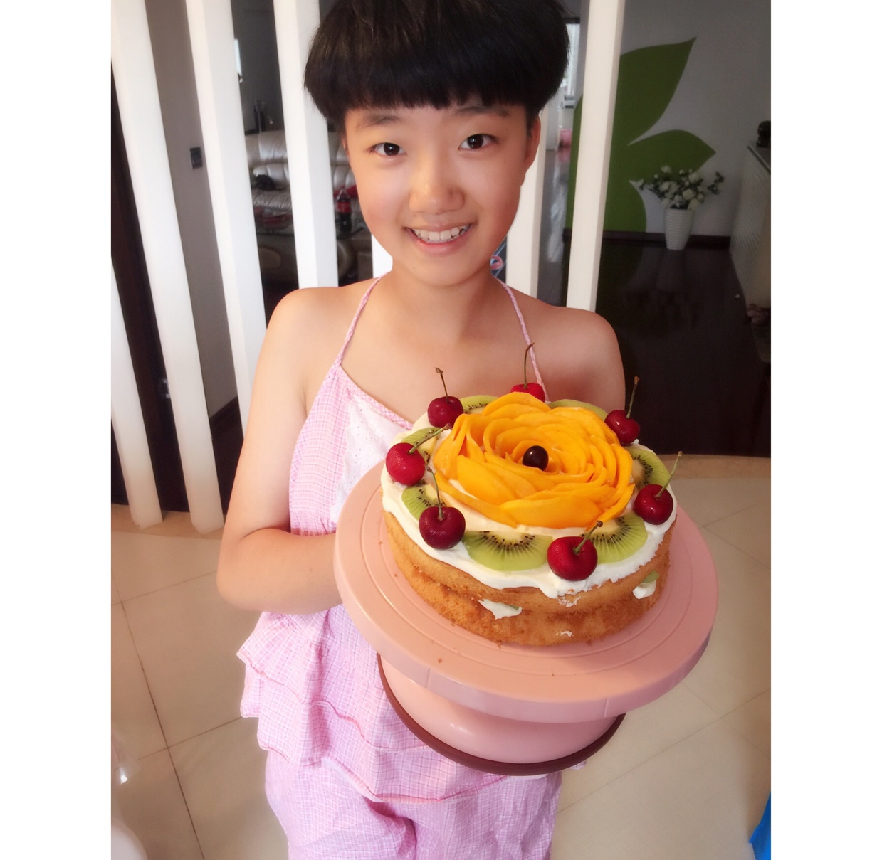她要求少奶油多水果的水果蛋糕