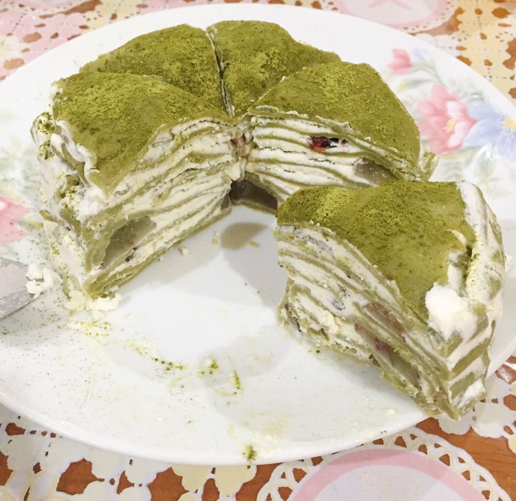 抹茶草莓千层蛋糕(可丽饼)mille crepe cake