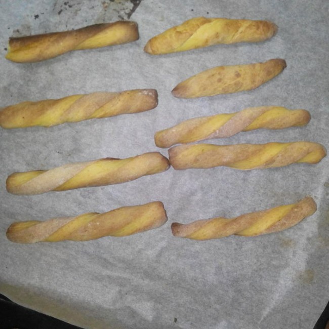 放了南瓜泥做的,怕宝宝咬断,特意做的粗一些,虽然敲起来当当硬,但宝宝还是能咬断,含在嘴里又化不了。总之,又硬又不酥,宝宝咬下一块会很危险。