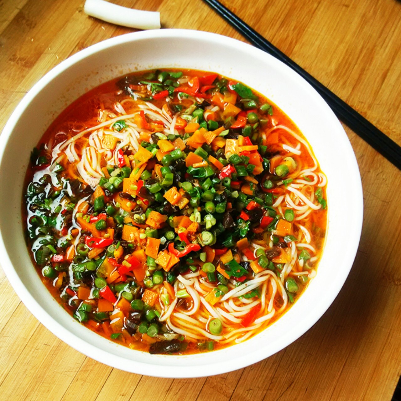 备忘:油,葱节,蒜片,干辣椒炒香后呛入浆水,关火。放盐,一点味精,-点点糖。再把炒好的各色蔬菜丁放进汤里。好了,放一会,让汤凉下来的同时,让各种滋味更好的融合一下。煮熟面条,在凉水中冲的凉凉的,最后用凉开水再过一下。面捞到碗里,浇上汤就好啦!吃的时候淋上红油辣椒,再就上一两瓣蒜。夏季家家都吃这个,解暑,爽口!