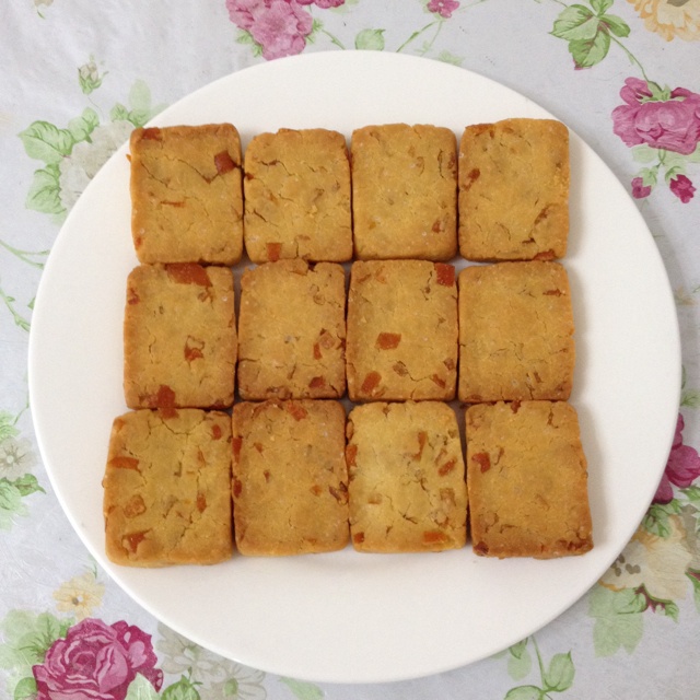 接着烤饼干,家里的糖渍橙皮吃不完,用来做饼干最好了,比方子多加了黄油