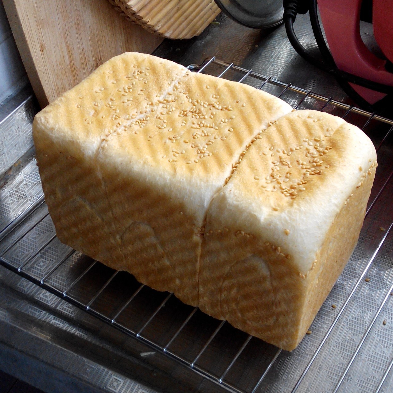 第二次做吐司,这次选一个全麦的方子做。这次比第一次发酵成功,所以还算比较方正。没出边角,我要努力提高烘培技术!