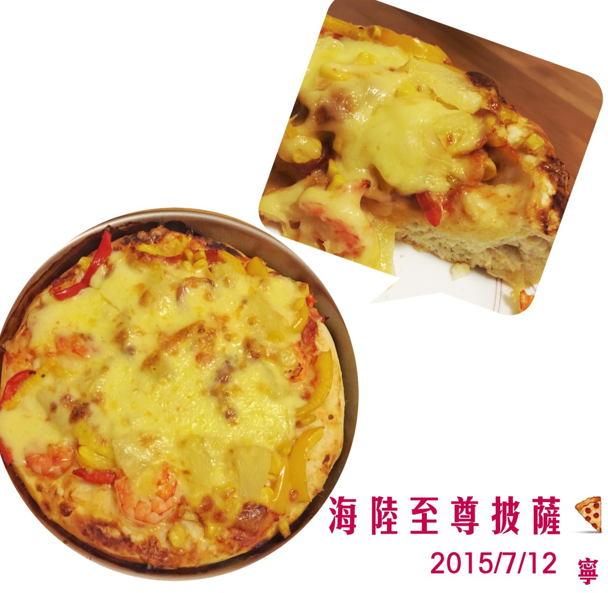 福兔Elsa 做过 午餐•2015年7月12日 邀请邻居一起分享午餐~尝试做了超厚底的海陆至尊,饼皮蓬松感满满,鲜虾和菠萝绝配~加上浓郁的芝士,香甜可口!但是…一块就饱肚了,因为实在是太厚了 2015-07-12