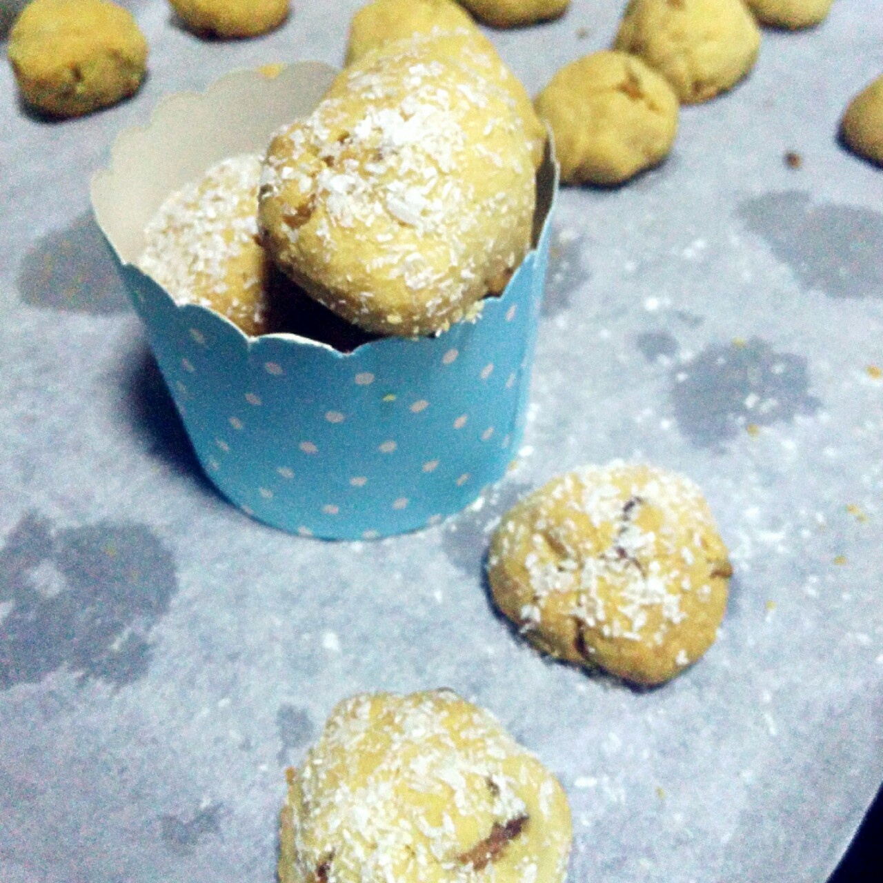 听说这是成功了。我来拉低颜值啦!好吃,香香哒!没有糖粉用椰蓉冒充啦