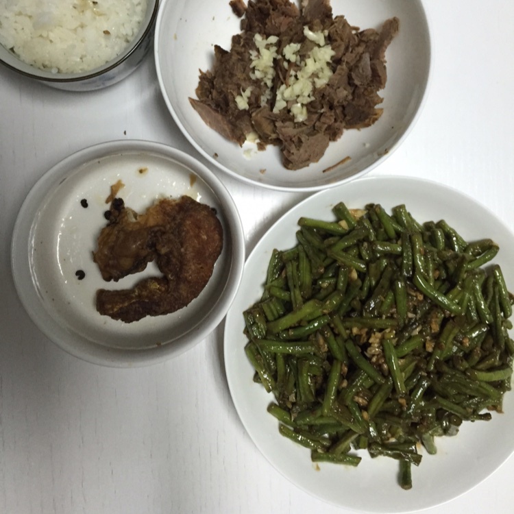 牛肉,鱼,豆角,白饭
