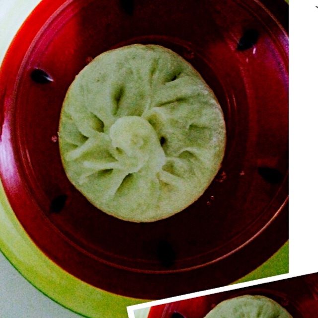 老妈包的韭菜虾米粉丝包子,味道杠杠的。^_^