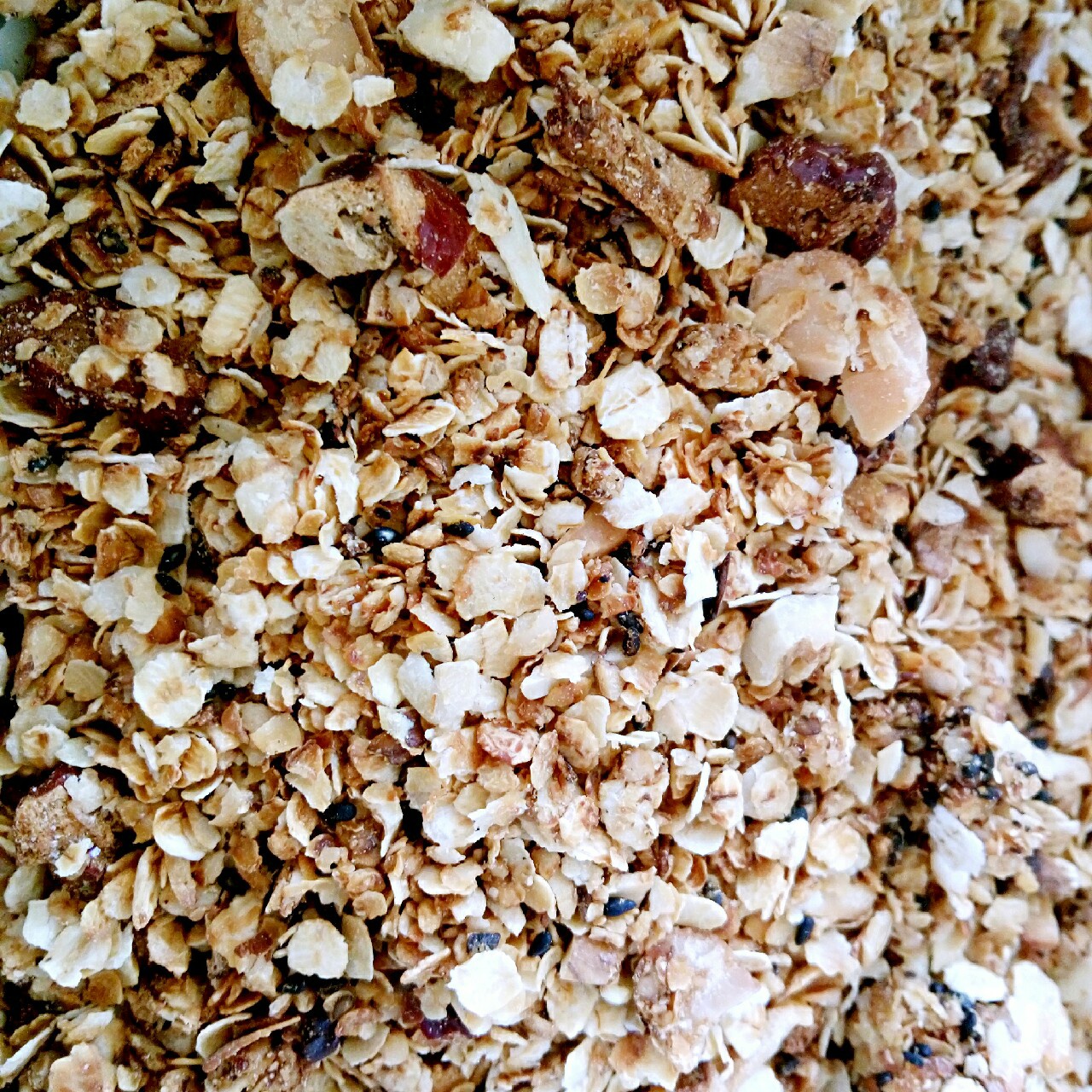 格兰诺拉麦片,加了核桃,花生,夏威夷果,黑芝麻,大枣和蜂蜜。健康的零食,小朋友爱吃。