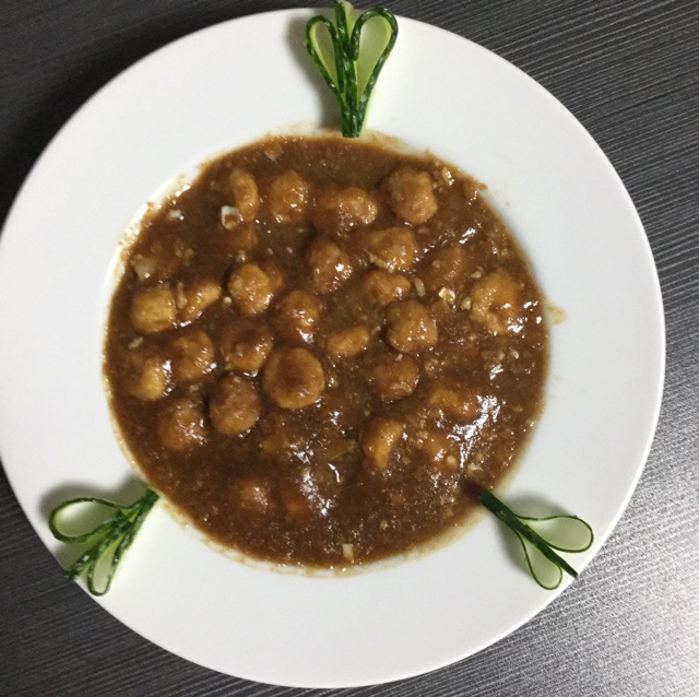 中午时间紧,遂做了鸡肉红烧丸子,勾欠时加了少许白胡椒面,很有新鲜感。